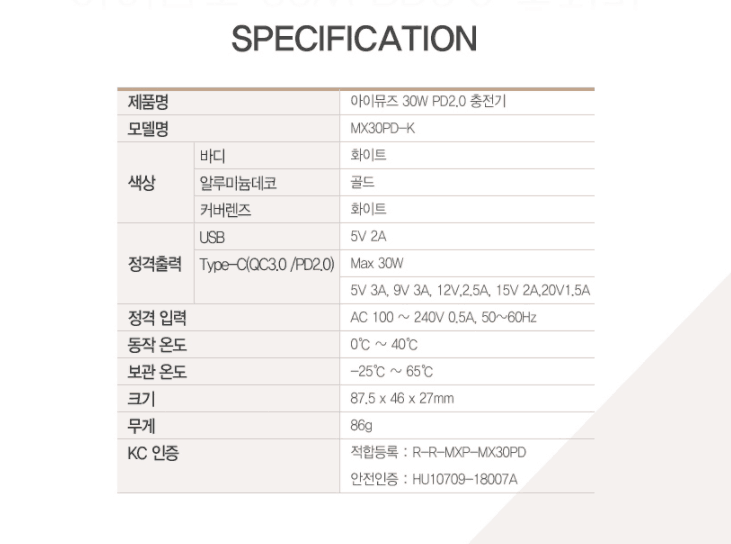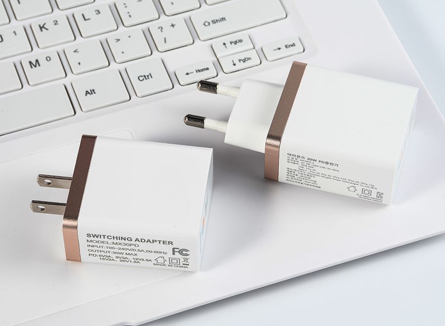 MX30WPD-K 是一款熱銷爆款的30W PD充電器,目前在韓國試產熱銷,它已經通過了KC,KCC,CE,FCC等認證,運用PI芯片,性能穩(wěn)定 。外觀為高光面,更有可選顏色的彩色邊框(玫瑰金,土豪金,銀色等)