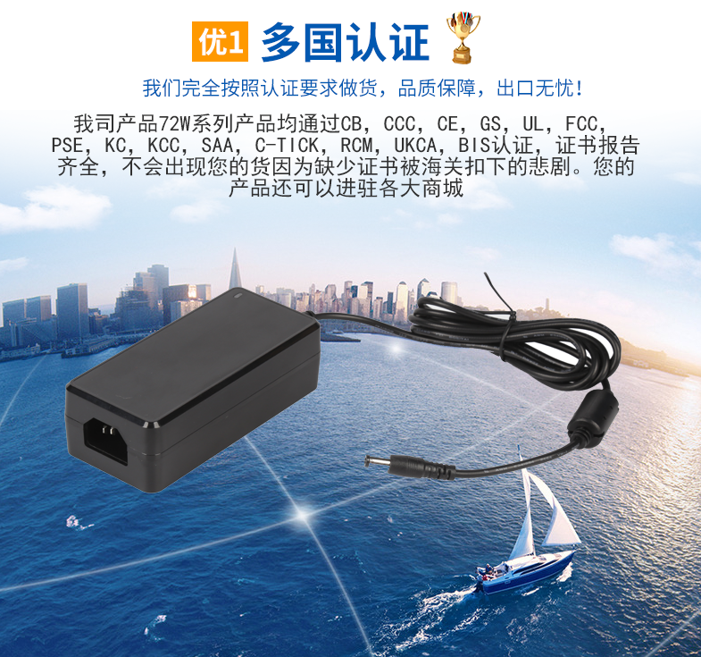 -12V5A/24V3A/19V3.42A電源適配器過UL 3C CE FCC UKCA PSE認(rèn)證