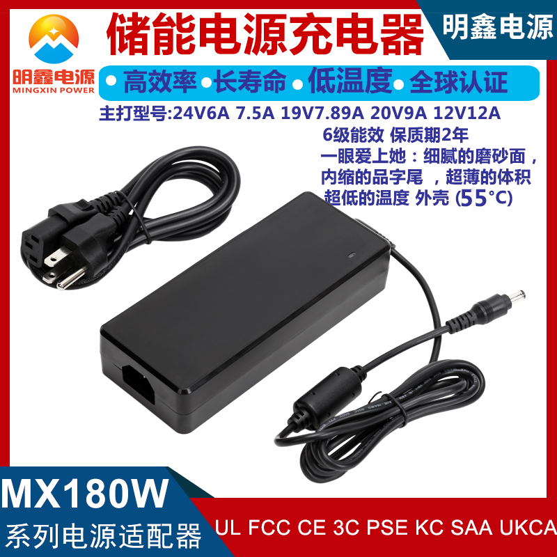 MX180W系列電源適配器 ,專業(yè)用于給儲(chǔ)能電源充電,已經(jīng)通過了CB UL FCC CE KC KCC PSE SAA C-TICK RCM 3C認(rèn)證