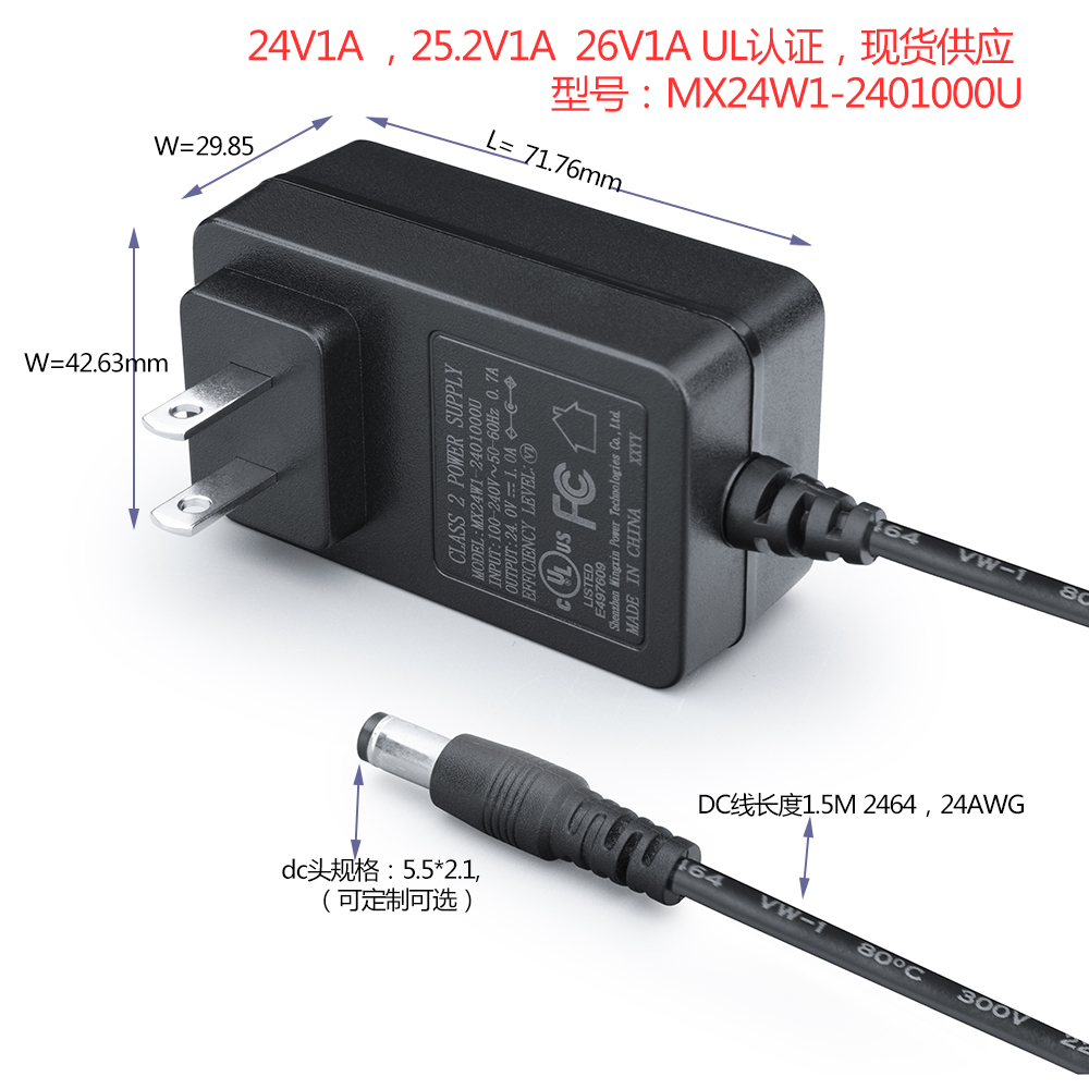 DC頭:5.5*2.1*10MM(默認(rèn)DC頭),其他規(guī)格可定制