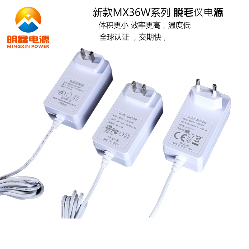 12V3A脫毛儀電源適配器UL FCC CE GS KC PSE CQC認(rèn)證 ,12V3A脫毛儀電源適配器,12V3A電源適配器,12V3A電源適配器UL認(rèn)證,12V3A美規(guī)沖充電器,冰點(diǎn)脫毛儀充電器,MX36W系列電源適配器