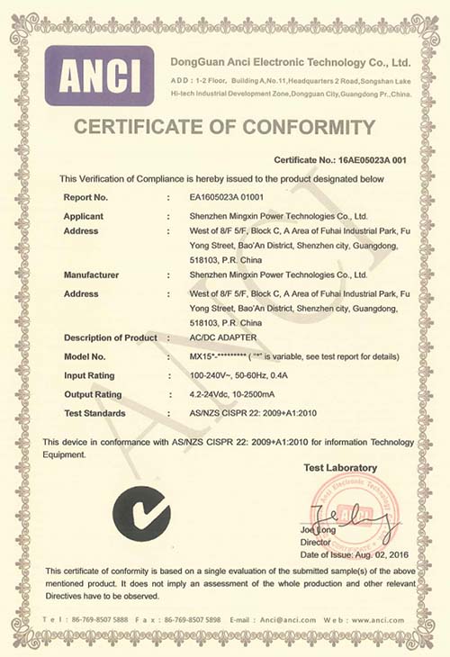 16AE05023A?001?C-TICK?Cert-950